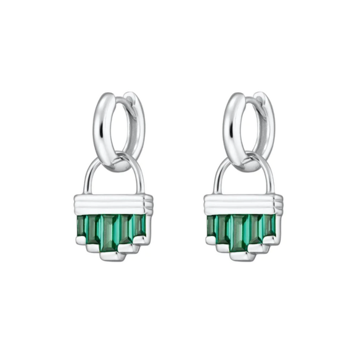 Scream Pretty Silver & Green Cleopatra Charm Hoop Earrings