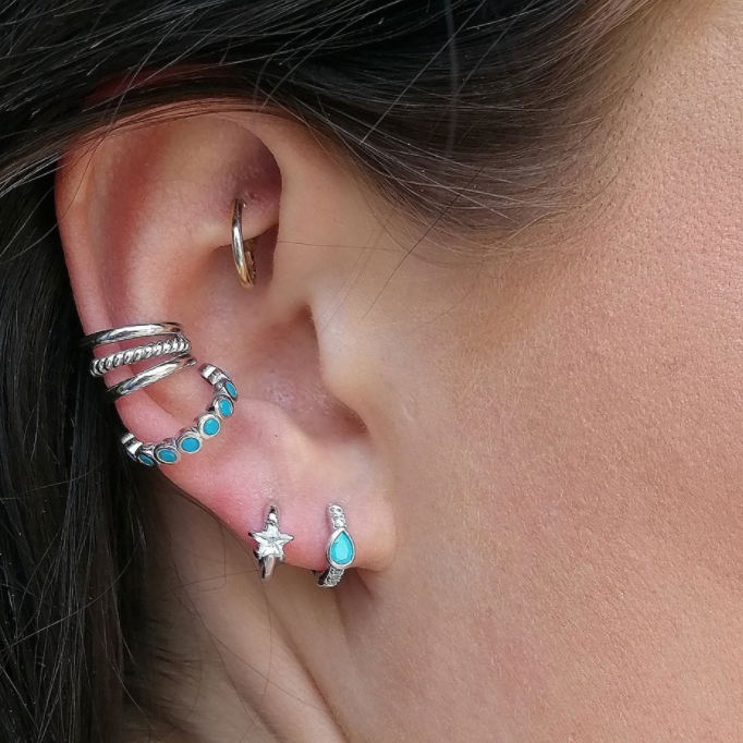 Scream Pretty Silver Turquoise Bezel Single Ear Cuff
