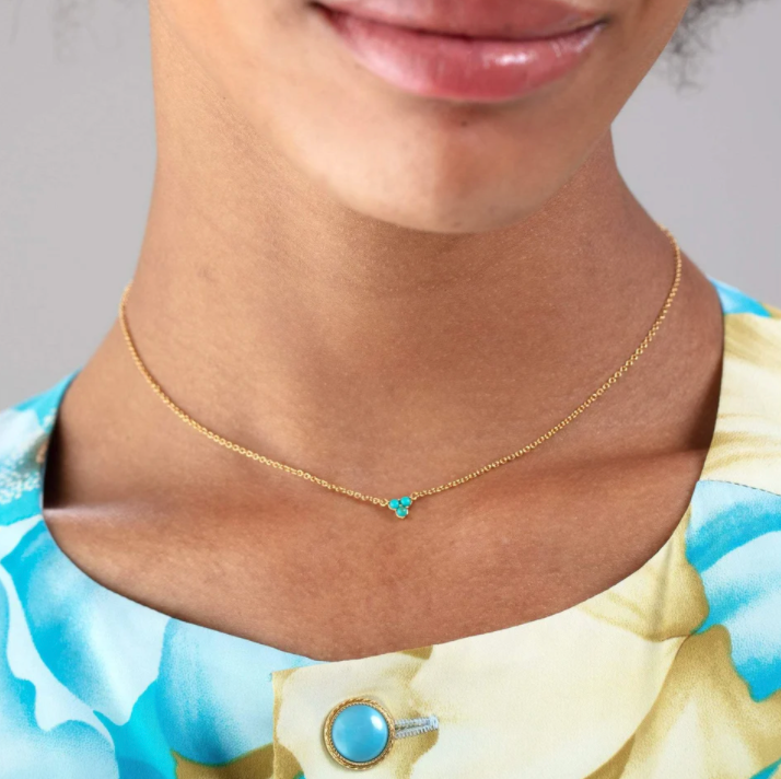 This stunning Scream Pretty turquoise trinity necklace offers modern simplicity at its best! Injecting rays of cool blue hues to your outfit this season.