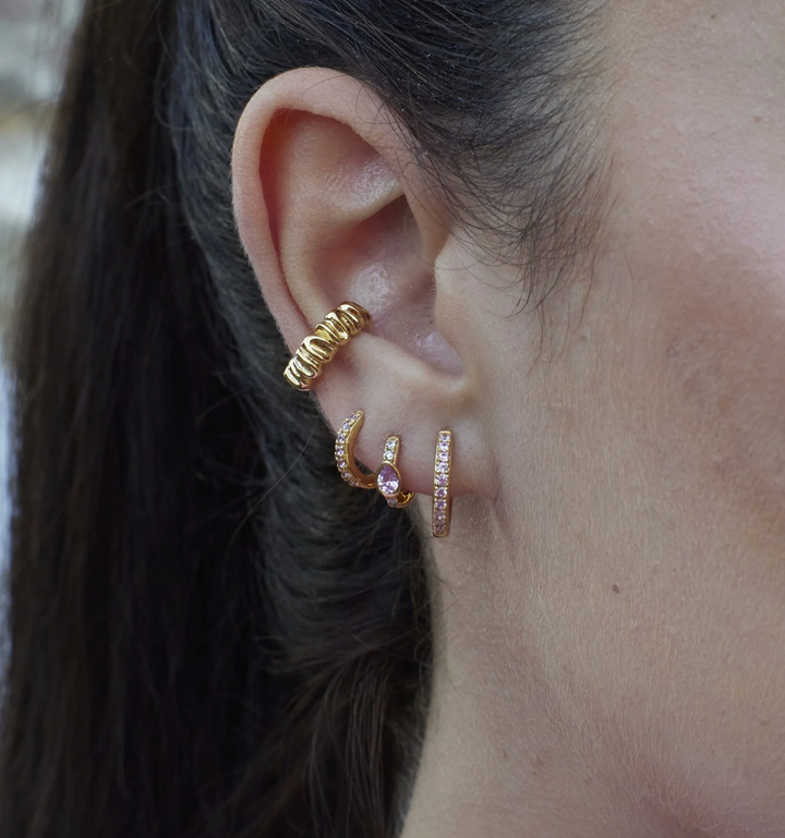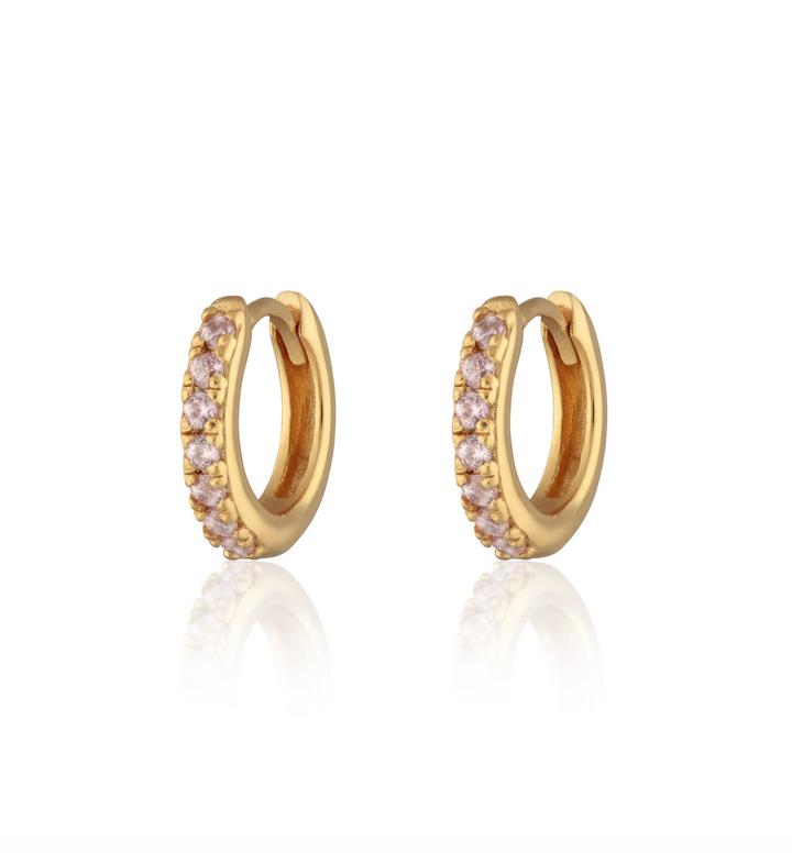 Add a touch of pink to your ears with these stunning blush pink huggie hoop earrings. The perfect earring accessory to freshen up your look this season!