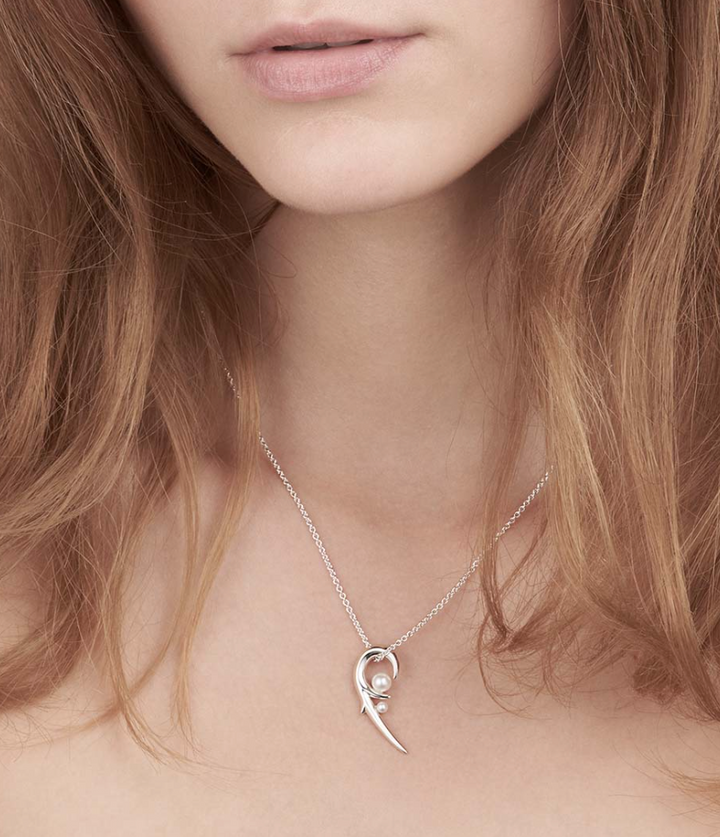 Handcrafted from sterling silver, a large freshwater pearl and a small freshwater pearl, our Hooked Pearl Pendant captures an ethereal light – but with the daring edge synonymous with the House of Shaun Leane. Our contemporary spin on the classic pearl necklace is a sleek proposition for the décolletage – soft lines and perfect pearls, suspended from the finest of chains.