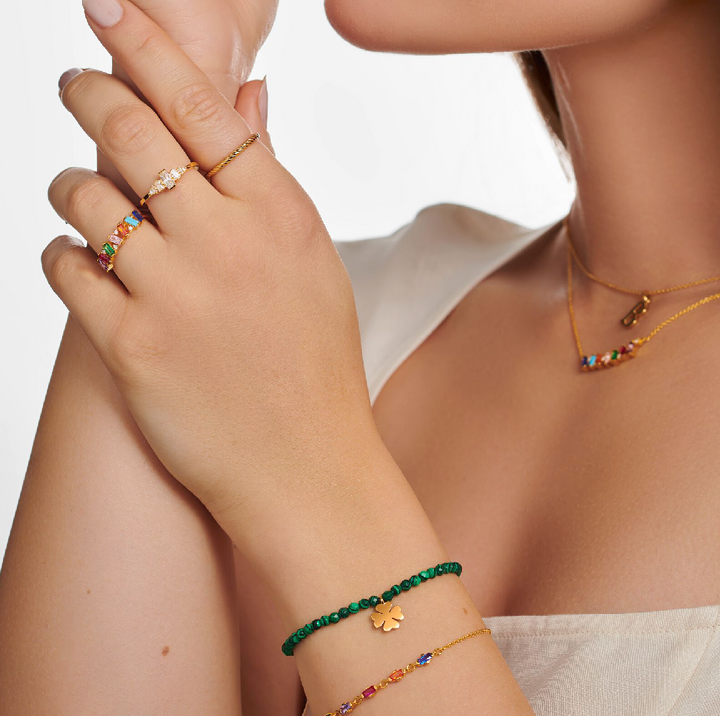 Dancing Stones: White gemstones in brilliant baguette cut are the highlight of this ring. Combine with other rings to create an en-vogue stacking look!