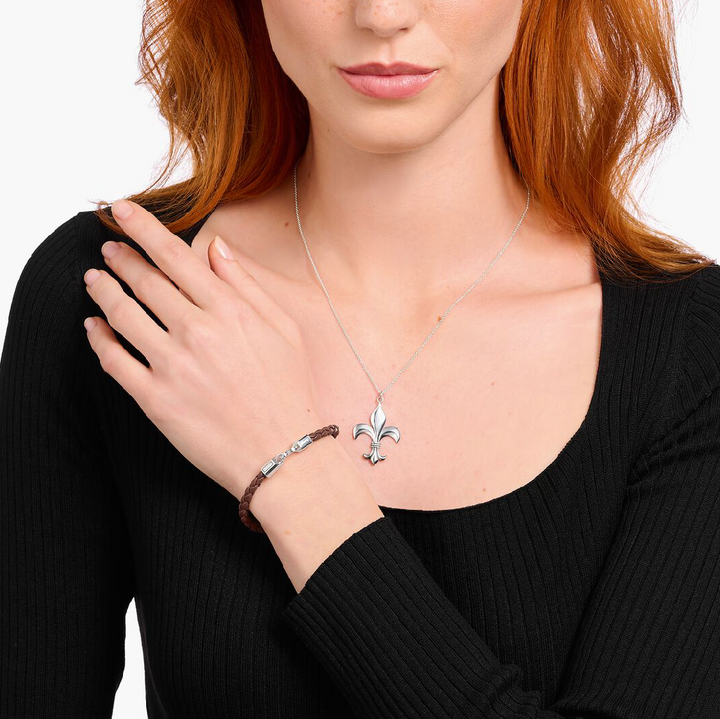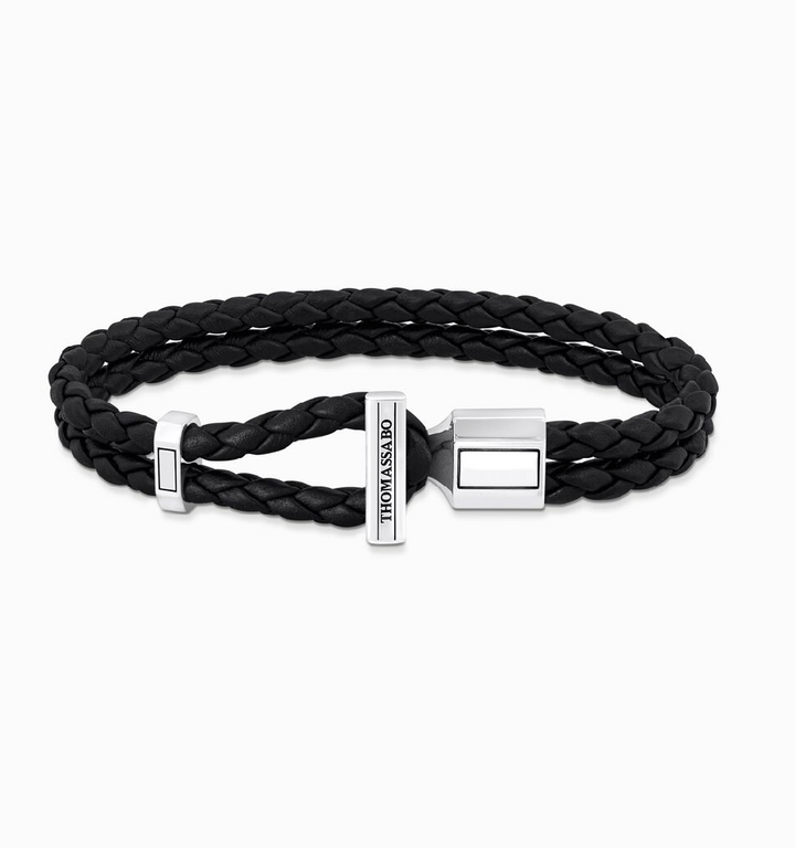 This basic bracelet with its urban design is made of a double, braided black leather bracelet with a diameter of 4 mm. Its striking toggle clasp is made of recycled, blackened silver and is engraved with fine lines.