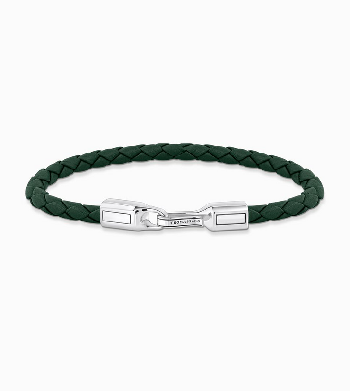 Thomas Sabo Silver Green Leather Bracelet 19cm