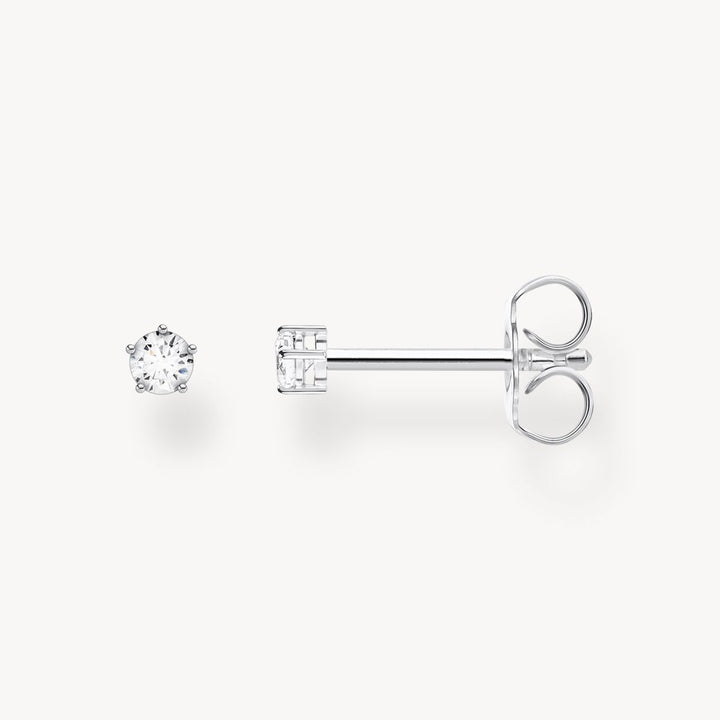 Matches perfectly with the Curated-Ear-Trend: The small single ear stud sets glittering highlights. The cool 925 Sterling silver underlines the white zirconia stone right at the centre of the ear stud. The stone is hand-placed into the delicate prong setting – all the light can fall through the zirconia and creates dazzling effects on your earlobe. Combine this solo ear stud with other earrings and pieces from the Charming Collection and express your individuality!