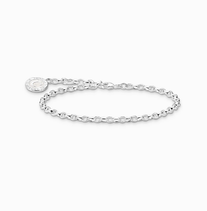 Charm Carrier: The charm bracelet is made of high-quality, polished 925 Sterling silver. Attached to its end is a round THOMAS SABO Charm Club Charmista Coin that is decorated with shimmering cold enamel in white. It can be individually engraved with letters, numbers or symbols!