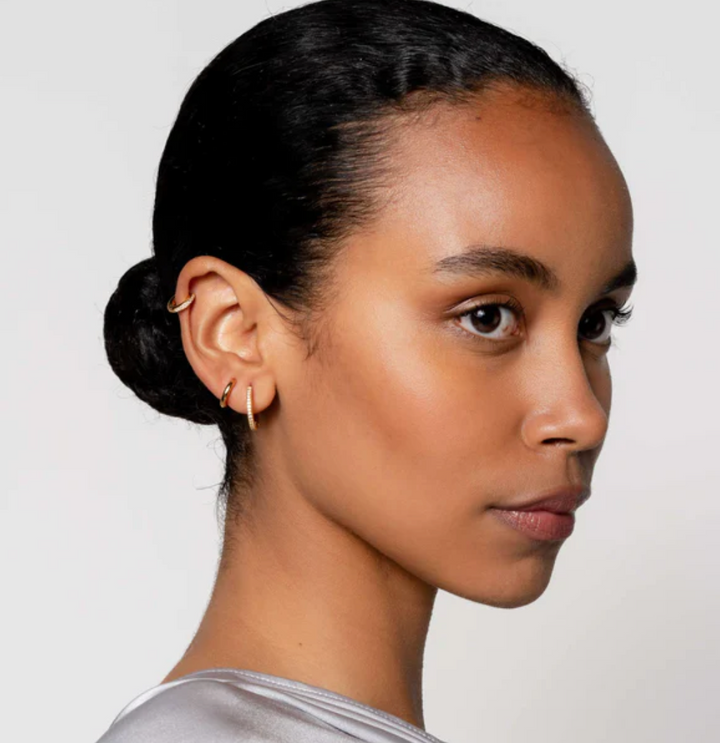 These TI SENTO gold-plated huggies are designed to delicately hug your earlobes providing a snug and comfortable fit. The huggies are crafted from premium 925 sterling silver and plated with yellow gold for a radiant touch. Their diameter is 12mm. Elevate your Ear Party with these timeless pieces that seamlessly blend classic elegance with modern flair. Style them solo for a minimalist look that exudes understated chic, combine them with others or decorate them with your favourite ear charms to create your own irresistible Ear Party.