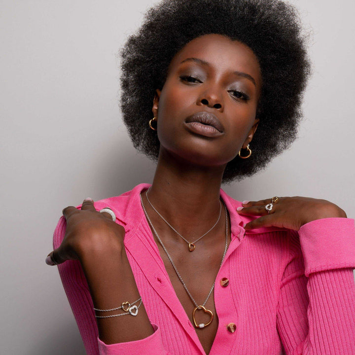 This gold-plated heart bracelet flaunts a dainty heart shape as its centre piece. Crafted from the highest quality 925 sterling silver, its heart shape is plated with yellow gold. Stack this heart bracelet with other bracelets to make a bold statement. The length of the bracelet is adjustable to make sure it’ll fit just right. All of our bracelets are nickel-free and hypoallergenic.