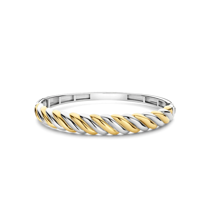 Elevate your style with the Gold-Plated Silver Domed Bracelet, a bold and sculptural masterpiece crafted from premium 925 sterling silver. Featuring an twisted design of yellow gold-plated and polished silver bands, this bracelet exudes confidence and sophistication, making it the ultimate statement accessory. Its dynamic and fluid silhouette pairs beautifully with both bold and minimalist outfits—style it with a sleek black jumpsuit for a daring, modern edge or a flowing white dress for an aura of understated elegance. Hypoallergenic and nickel-free, this bracelet ensures both comfort and quality, offering a luxurious feel for all-day wear. Embrace your inner icon and let this timeless piece become the cornerstone of your jewellery collection.