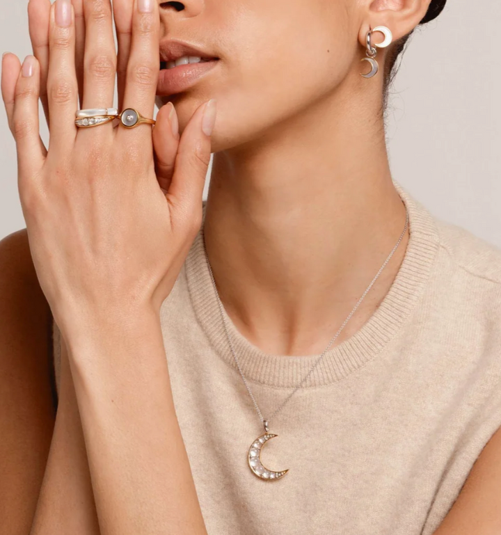 This TI SENTO gold-plated moon pendant flaunts luminous mother of pearl stones handset in a radiant yellow gold-plated setting. The luminous mother of pearl stones create a mesmerising effect, reflecting light and shimmering with lustre. Carry the mystical enchantment of the moon with you wherever you go. Irresistibly feminine, this moon pendant will surely make a statement!