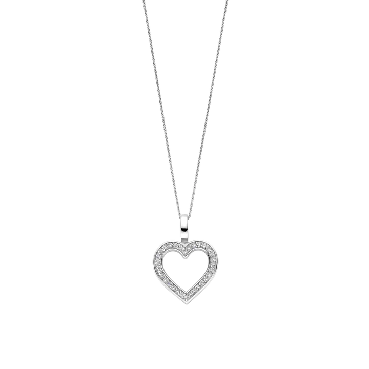 Shaped from 925 sterling silver, the open heart design is traced with a delicate pavé of cubic zirconia—each stone hand-set to reflect light with graceful brilliance. Its refined silhouette expresses emotion with clarity and ease, perfect for layering or worn solo as a meaningful accent. Nickel-free and hypoallergenic, this piece is as gentle on the skin as it is expressive in style. The pendant comes with a dainty silver chain necklace.