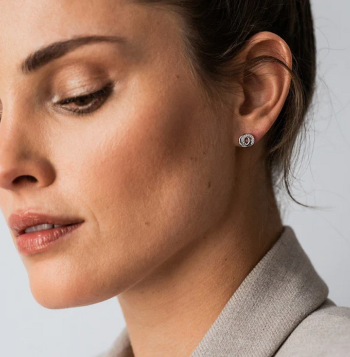 Infinite connections between this smooth silver band and white zirconia pavé setting. They sparkle as they dance together on these elegant earrings. Silver beauty.