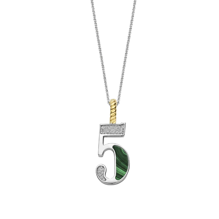 Ti Sento Silver Malachite '5' Number Pendant Necklace