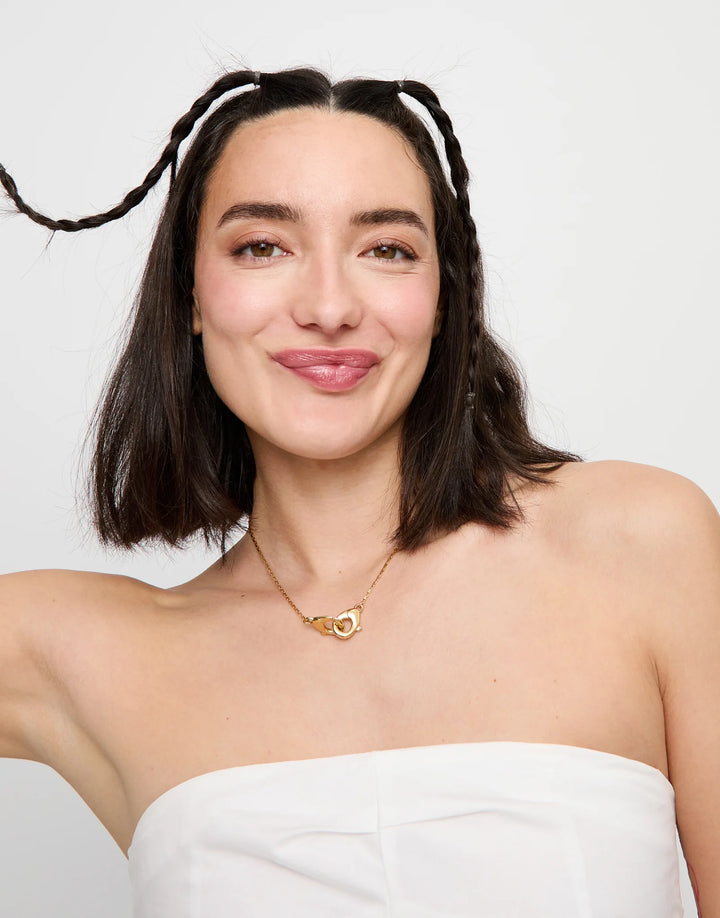 Chain necklace with 18k gold-plated carabiner clasp closure. The strength of your connections with a cutting-edge design. This interlocking chain necklace features bold links and the iconic interlocking carabiner clasp, all plated in sterling silver for a clean, radiant finish. A handcrafted, contemporary piece of jewellery.