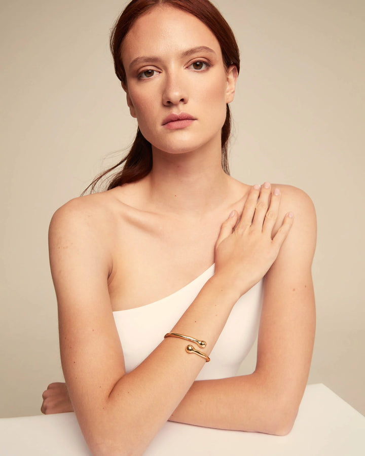 Rigid 18ct Yellow Gold-plated metal alloy bracelet with inner spring. Jewel 100% handcrafted in Spain, achieving a unique design finish. Youthful collection. Jewel inspired by young, free and carefree souls that will end up linking experiences until they reach maturity. Links of different sizes that sometimes come together to form special chains and bracelets, while on fingers and ears they untwine in a natural and sensual way. A modern collection ready to wear at any time or situation.