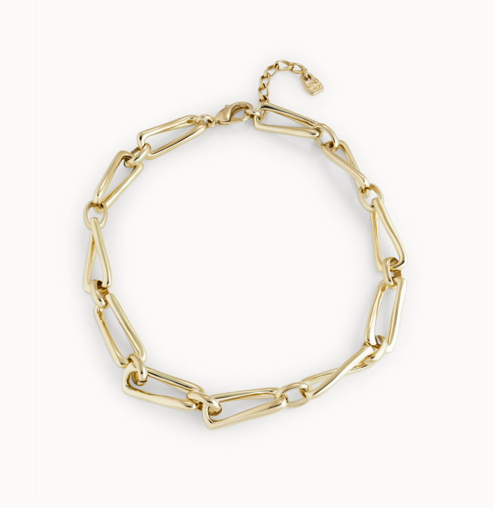 The Galaxy necklace is a design featuring squared gold-plated metal links. The lobster clasp allows it to be adjusted to the desired length. It weighs 87.5 g. Choose this handcrafted-in-Spain piece of jewelry and wear it with the rest of the collection to steal the spotlight.