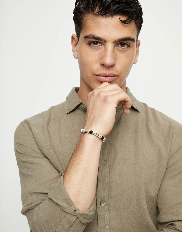 Beaded bracelet with silver and black Murano glass beads. The collection Ser imparable is designed to bring out your most punk spirit; a spirit that prefers to ask for forgiveness rather than permission, a spirit that is unstoppable and gives it all. If you are surrounded by chaos and noise with the volume up to the max, Ser Imparable is the collection that will take you on stage like a true rock star.