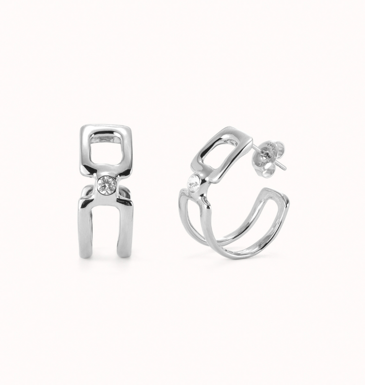 UNO de 50 Silver Double Rigid Hoop Earrings