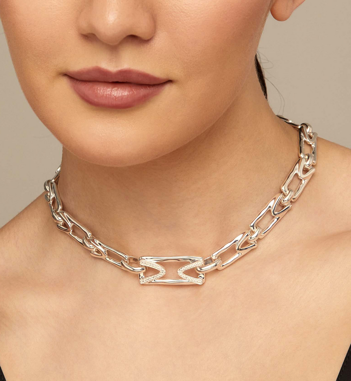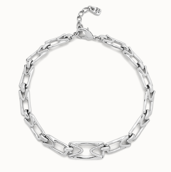UNO de 50 Silver Rectangular Link Necklace - Topaz Detail