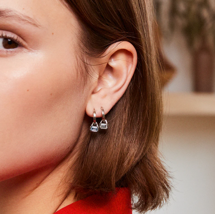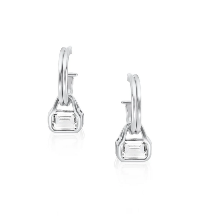Our octagon cut gemstones are encased in a bezel setting and then looped onto our vintage inspired double-row hoops. Sold as a pair, the detachable nature of these earrings makes them a versatile two-in-one design. An elevated take on birthstone jewellery – for those with an affinity to White Topaz: