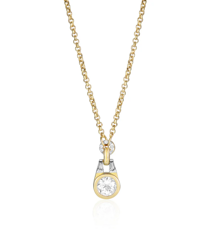 The Olive Necklace takes inspiration from V founder and designer Laura Vann’s own engagement ring, featuring a ‘buckle’ design that is now a signature style for the brand and synonymous with V’s bespoke service. Crafted from 18ct yellow gold vermeil, the Olive necklace is meticulously set with round brilliant and tapered white topaz stones – also available with V’s signature emerald green stones.